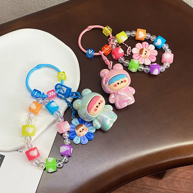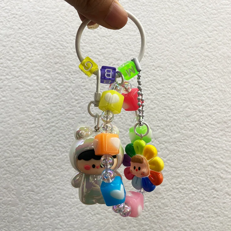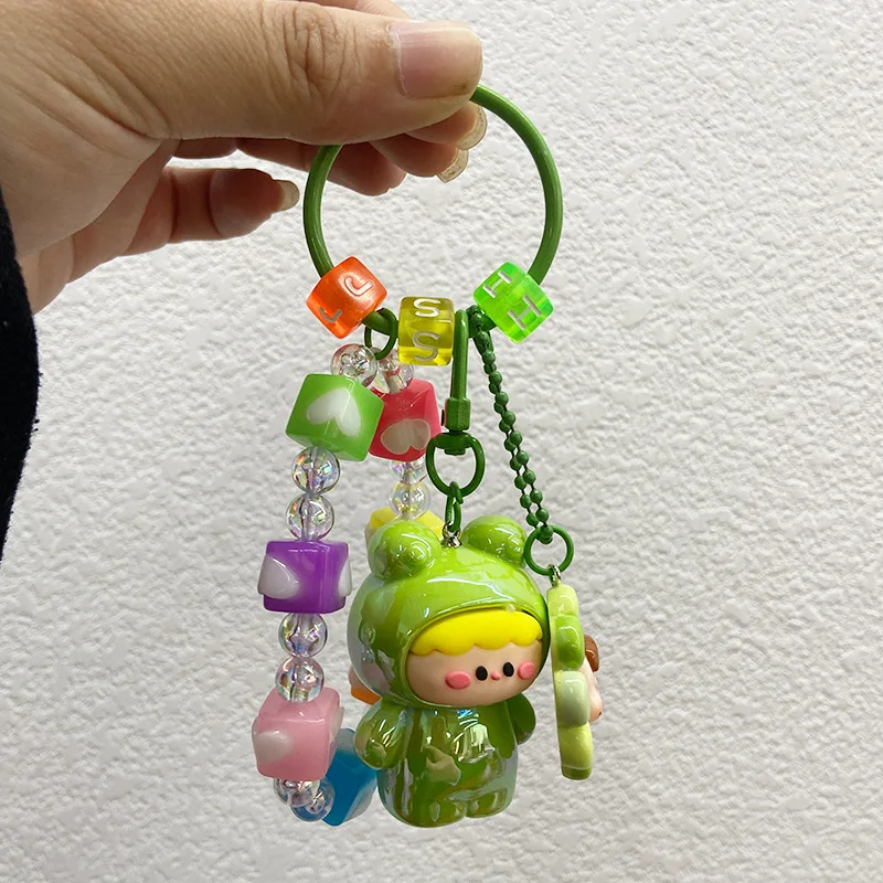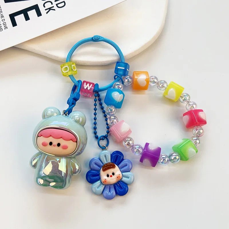 Adorable Cartoon Plush Keychain with Glossy Finish - Cute Girly Bag Charm for Women & Daily Use